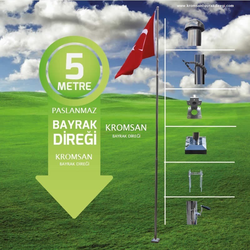 AISI 304 KALİTE PASLANMAZ KROM BAYRAK DİREĞİ İKİ TİP ÜRETİLMEKTEDİR